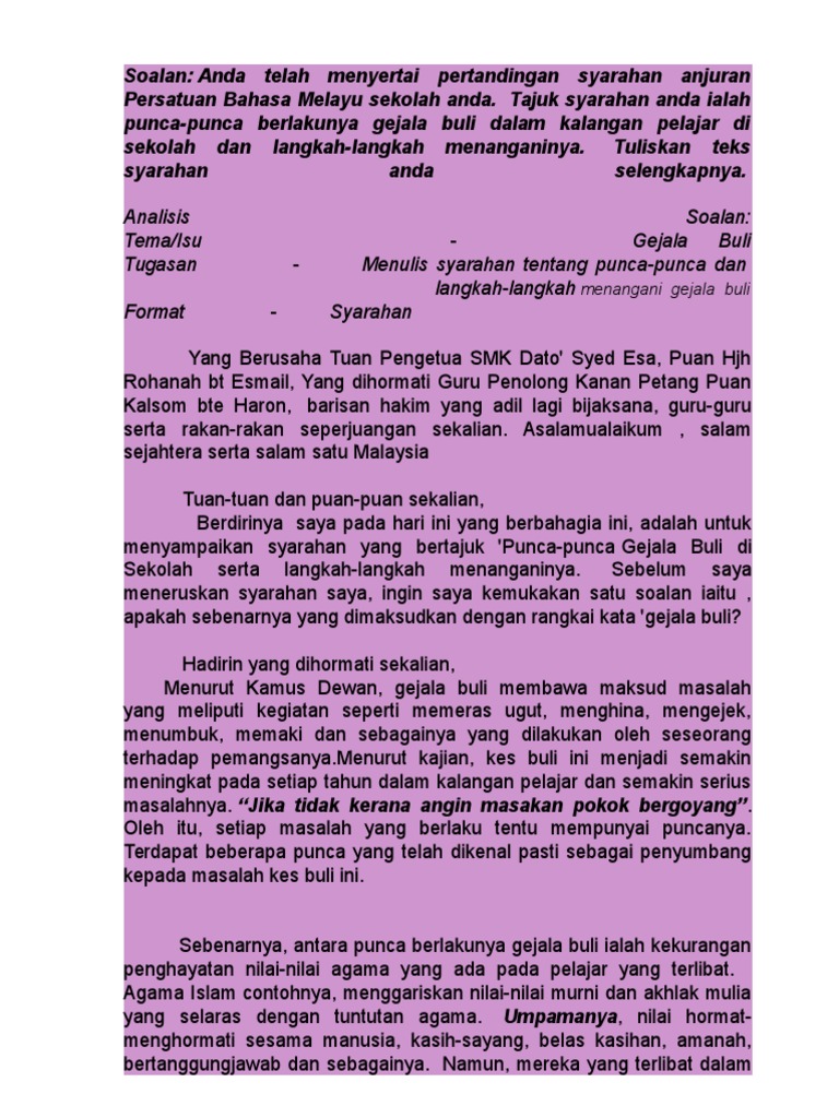 Gejala Buli Di Sekolah Semakin Berleluasa from imgv2-2-f.scribdassets.com Anda telah menyertai pertandingan syarahan anjuran persatuan bahasa melayu sekolah anda. Bagi menghapuskan aktiviti buli di kalangan pelajar maka. Jangan biarkan anak kita jadi mangsa buli fizikal dan mental. Punca kes buli boleh menyebabkan manusia hilang pertimbangan. Punca kes buli perkembangan sosioemosi kurang stabil • tidak dapat mengawal emosi dengan baik. Pada zaman revolusi perindustrian ini. Filem berkaitan buli juvana menarik minat pelajar untuk menunjukkan mereka lebih 'hebat' tindakan sebegini menjadi punca kepada kecenderungan besar akan menjadi penjenayah apabila dewasa. Punca masalah obesiti dalam kalangan remaja semakin merebak pada masa ini ialah para remaja tidak mempraktikkan amalan pemakanan seimbang.